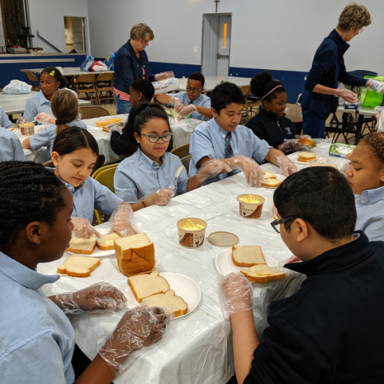 Our growing, faith-filled community is founded upon daily religious instruction, classroom and school-wide prayer, monthly First Friday Mass, service learning, and participation in the New Evangelization initiatives.